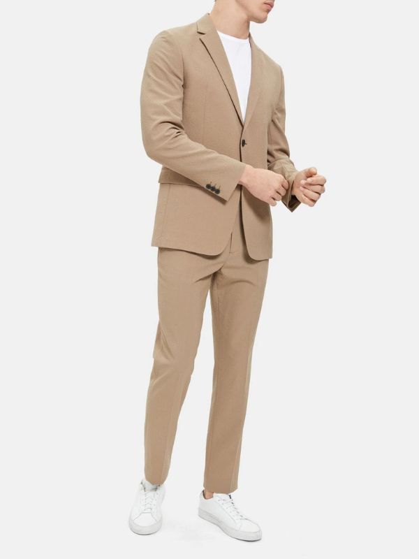 這款西裝外套以頂級彈力羊毛泡泡紗面料剪裁而成,為雙顆鈕扣設計,無論作休閑和莊重身搭同樣適合,更能突顯男生的成熟穩重,而且卡其色用色還十分好看~
