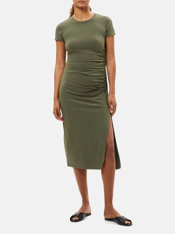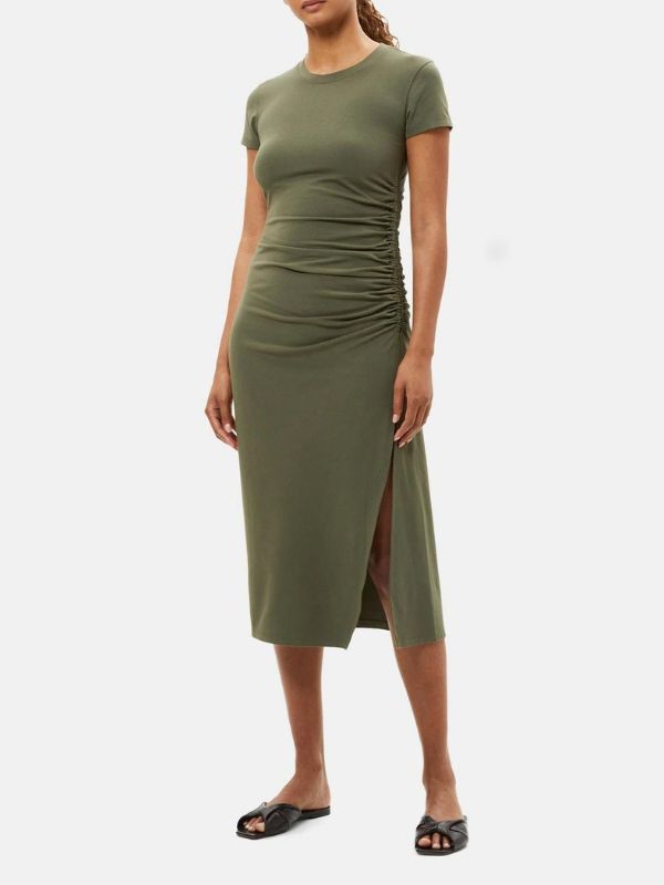這款緊身連身裙以莫代爾棉製成,舒適透氣而且對人體無害,於腰間位置設有皺褶細節,裙擺亦設有開至大腿位置的開叉,外型簡約休閑且帶點性感美~