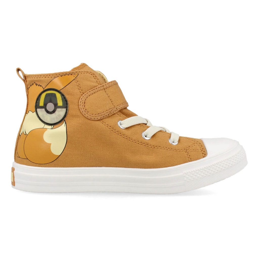 以伊貝為主題,以棕色作底色,並於鞋的兩側印有伊貝的正背面圖案,而原來 Converse 的標誌白色 logo 亦飾有相對應的精靈球,令整體感覺更一致完整。