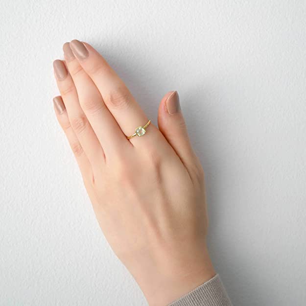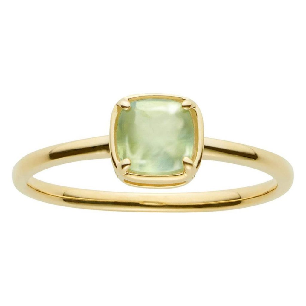 這枚戒指飾有清新的淡綠色能量石,能加強思考、判斷和直覺。方形設計充滿復古感。
