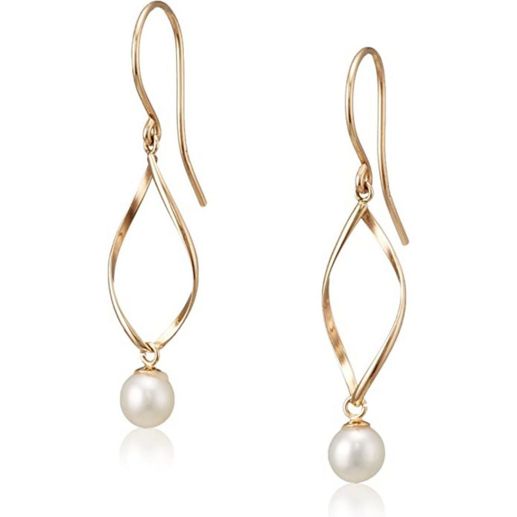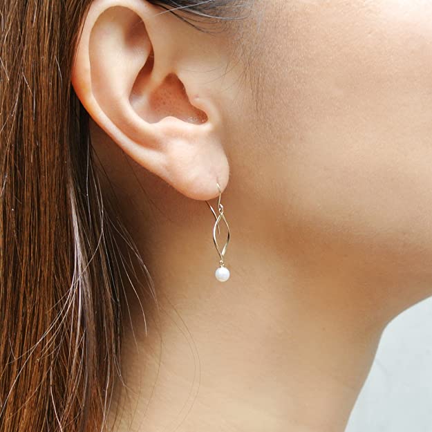 這款耳環充滿女性化設計,以扭曲的金屬線條向下垂下,滿滿的線條美,底部迷你的珍珠吊墜是耳環的點睛之筆。