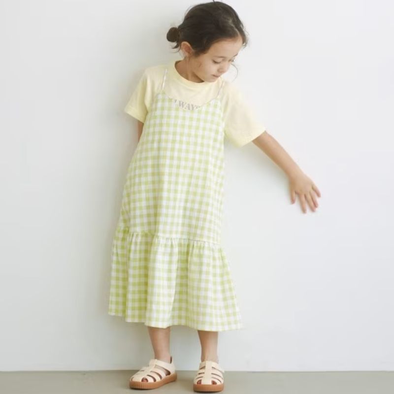 這款套裝由 1 件 簡約文字 T 恤及 1 條格紋吊帶魚尾連身裙組成,共有 2 款顏色選擇,都給人一種清新自然的感覺,而且上述 2 件衣服皆可獨立穿著,以同一價錢買到兩件單品十分划算~