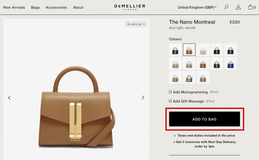 Step 3:前往 DeMellier 英國官網,挑選心儀的商品,再放入購物車。
