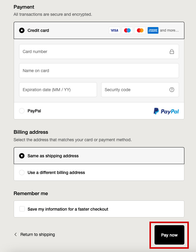 Step 7:輸入信用卡資料,然後點擊「Pay now」即可完成購買流程!