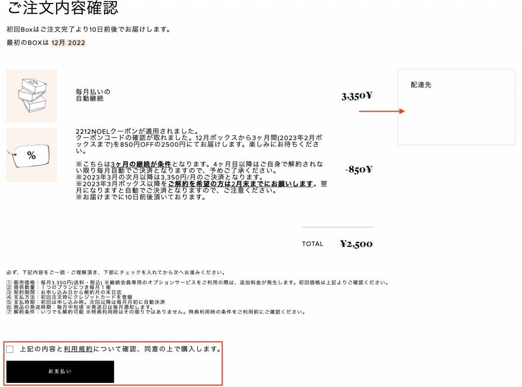 Step 6:檢查右上送貨地址、需付金額無誤後,剔選下方格子及點擊黑色按鈕付款。
