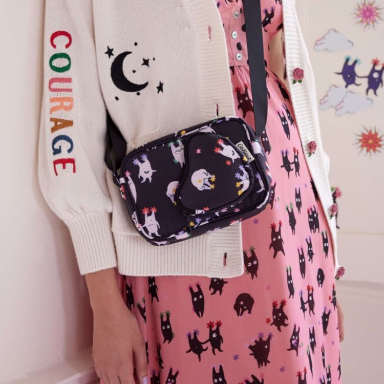 印花圖案設計可愛有趣,配合可拆卸的立體愛心收納包,令整個設計更獨特。