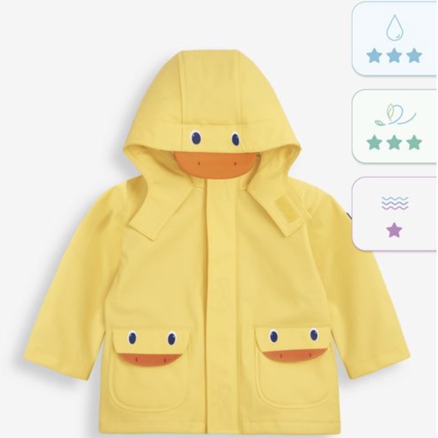 這款連帽防水外套為鴨子印花款式,外型可愛趣緻,專為外出時不能預計的天氣狀況而設,能有效防風防水,還可為孩子在颳風時帶來溫暖,為衣櫃必備單品之一!