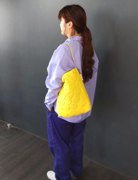 DOTS 系列單肩包,尺寸像枕頭一樣大,喜歡超大容量包包的女生必買!同樣有多達六款顏色選擇,尼龍背帶可調節成側孭、斜孭或手拎的長度,容易跟據日常衣著而作出不同配搭~怕包包太大,同款式還有S/M的尺寸哦!