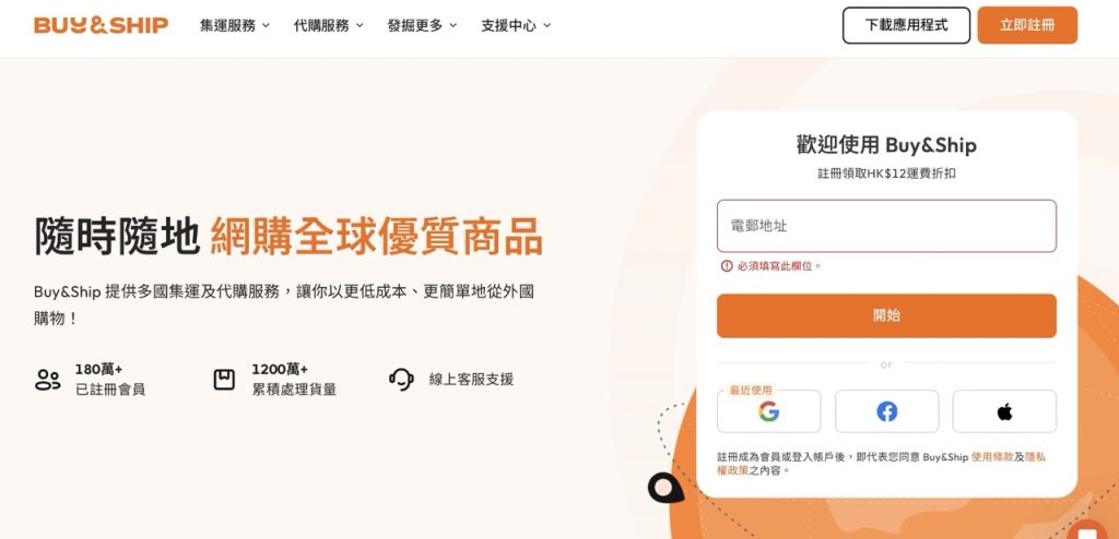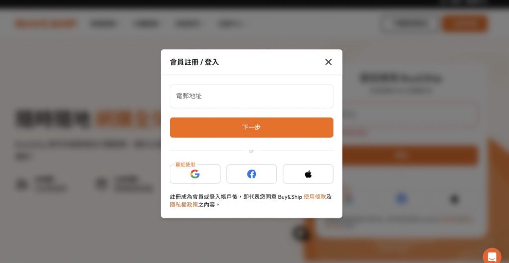 Step 1:前往 Buy&Ship 網站,登入或註冊會員。