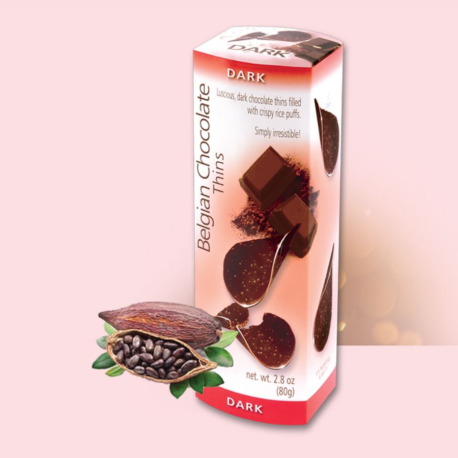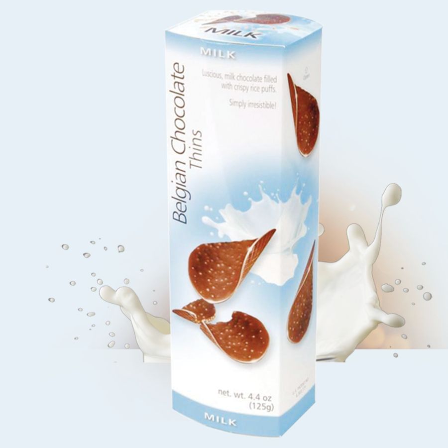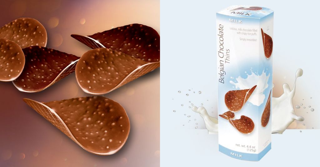 比利時巧克力薯片由最高品質的比利時巧克力(牛奶巧克力或黑巧克力)製成。薯片中添加了脆米花,帶來鬆脆可口的味覺體驗。