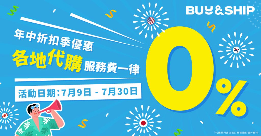 齊齊迎戰各地年中折扣季!Buy&Ship 即日起至 2024 年 7 月 30 日推出所有地區代購訂單 0% 服務費*優惠活動,專人為你購買,會員不再需要煩惱如何註冊購物網站會員、海外信用卡付款問題,慳出更多時間選購心頭好~繼續往下閱讀了解更多活動詳情吧!