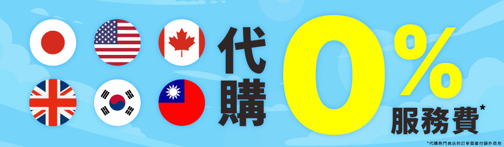- 0%手續費適用於2024年7月9日至7月30日11:59PM(香港時間)期間建立之代購訂單