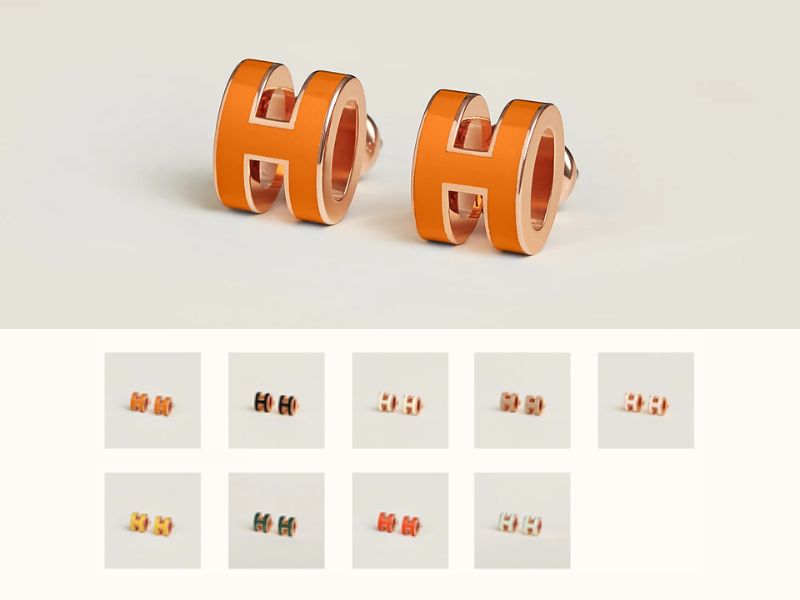 同系列的耳環則比香港多出 6 種顏色選擇,包括經典橙色!用玫瑰金鍍層金屬製成,將其縮小成精緻小巧的耳釘,表面光滑圓潤,更顯年輕活力。