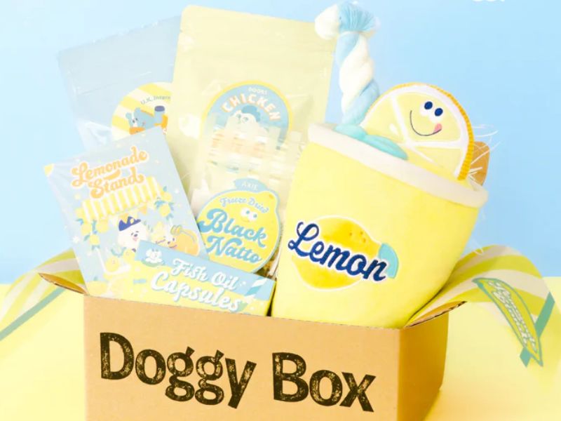 以8月的中型犬禮盒為例,主題為「檸檬汽水攤」,內含一個檸檬造型、帶繩子吸管的玩具。零食方面則有凍乾黑納豆、馬肉薄片及雞肝。還有一款魚油膠囊,有益於狗狗的關節、毛髮和皮膚健康!