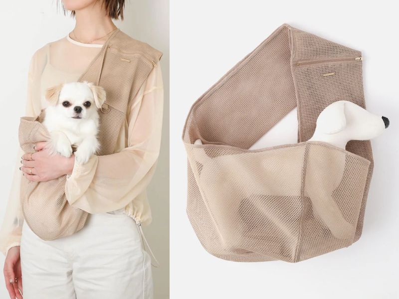 採用輕便透氣的網眼材質,即使在炎熱的夏季也能讓狗狗保持清爽舒適。背帶設計簡約時尚,點綴金色monchéri標誌和五金配件。實用的胸前口袋和內置安全扣環,方便攜帶隨身物品,同時確保狗狗的安全。