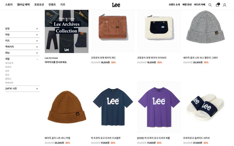 Lee 韓國官方網站的特價區有多款商品低至五折優惠,涵蓋了各類商品,包括外套、上衣、褲子、連衣裙和配飾等,最低18200韓幣就有交易!