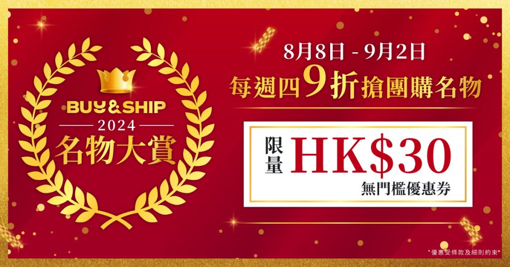 Buy&Ship 2024 名物大賞火熱登場!從 8 月 8 日至 9 月 2 日,為你呈獻 30+ 款會員熱買日、韓、泰 2024 超人氣團購商品,涵蓋護膚美妝、保健藥品、時尚配件、零食、日用品等等,比平時團購價格更便宜,還有限量 $30 無門檻優惠券,每週四開搶!快約朋友們一起購物狂歡吧~