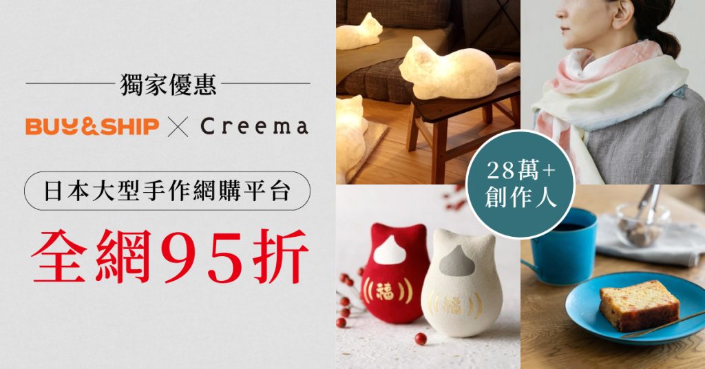 Buy&Ship X Creema 日本人氣手作平台獨家優惠,全網1800萬+產品一律95折!