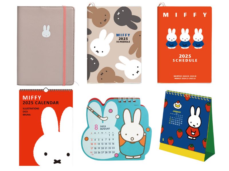 讓Miffy陪你渡過新的一年吧!由廣受歡迎的品牌如Square、Kutsuwa等出品,包含桌曆、壁掛式日曆、手帳、記事本等不同款式及尺寸,協助您規劃2025年的行程!