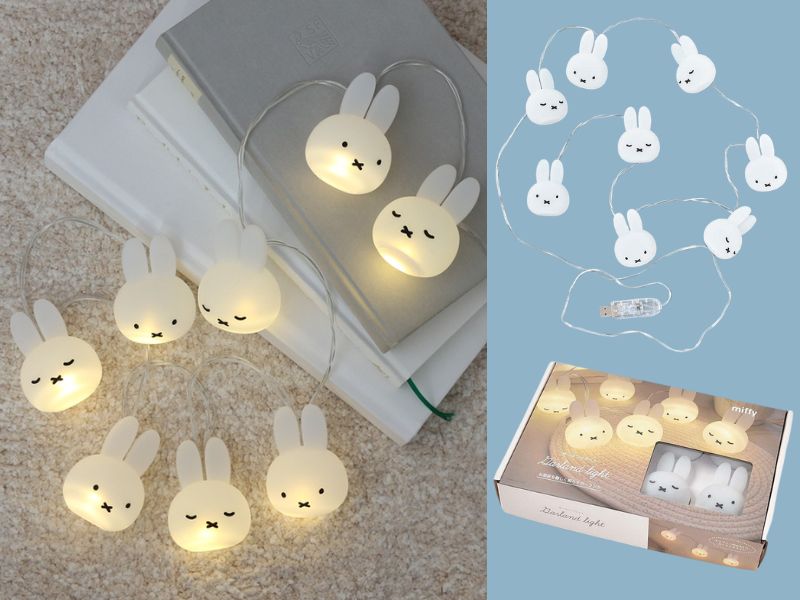 療癒系居家小物!內含八個柔軟觸感的矽膠米菲燈,散發溫暖柔和的光線,全長約180cm,使用USB供電,安全又方便。