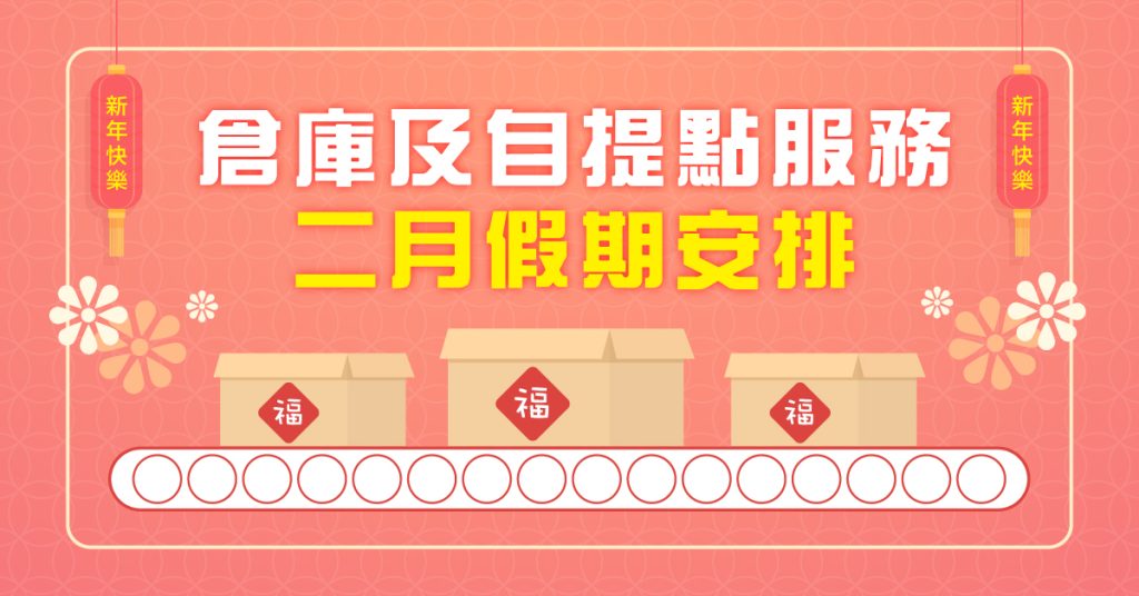 各地倉庫在二月將於當地公眾假期期間休息。倉庫休息期間將不會接收貨件、寄出貨件或更新貨件狀態。