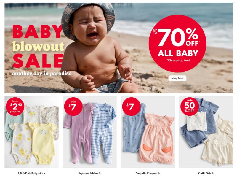 嬰兒服飾3折起,連身衣低至USD2.4,睡衣低至USD7