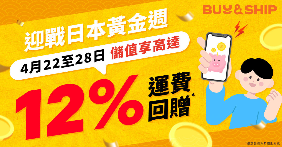 為同各位會員齊齊迎戰 4 月底開始的日本黃金週,特別推出運費回贈加碼活動幫大家慳得更多!只需於 2025 年 4 月 22 日至 4 月 28 日 11:59PM 期間儲值積分即可享有高達 12% 運費回贈~