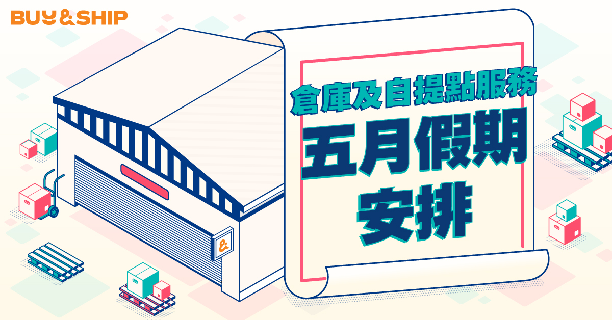 此外,各 Buy&Ship 自提點亦將於 5 月 1 日(四)、5 月 5 日(一)、5 月 31 日(六)公眾假期期間休息;將軍澳 The Parkside、土瓜灣利榮大廈、黃竹坑盛德工業大廈、石門企業中心加盟店亦於以上 3 天休息,部分加盟店更設有特別營業時間,務請注意。