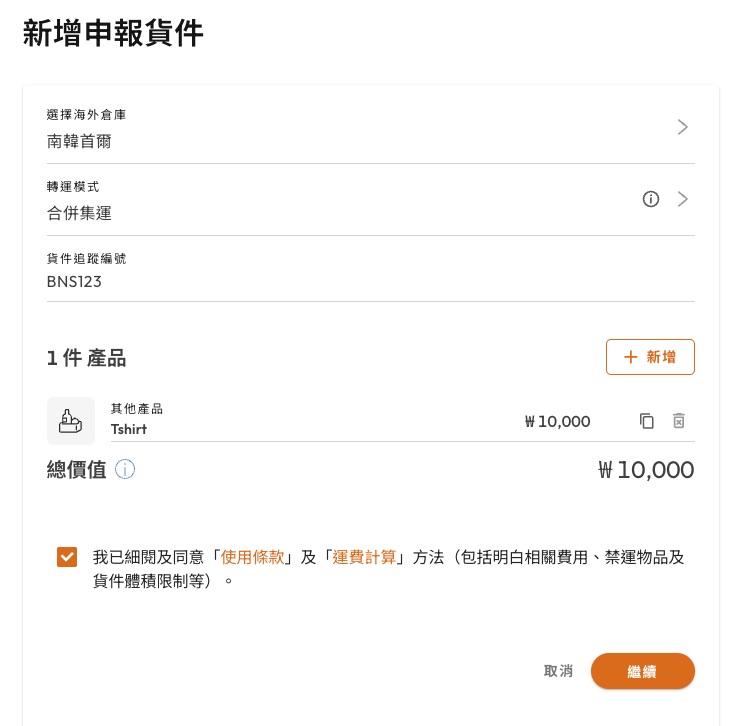 Step 5:如果在同一商店購買超過一款產品,請點擊「新增貨件」填寫其餘產品資料。
