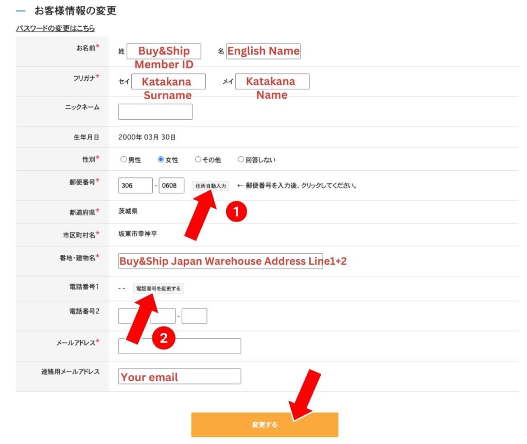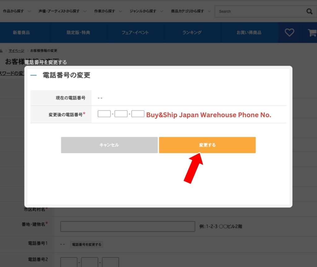 填寫作為寄送用途的電話號碼(輸入 Buy&Ship 日本倉庫電話)並確認。
