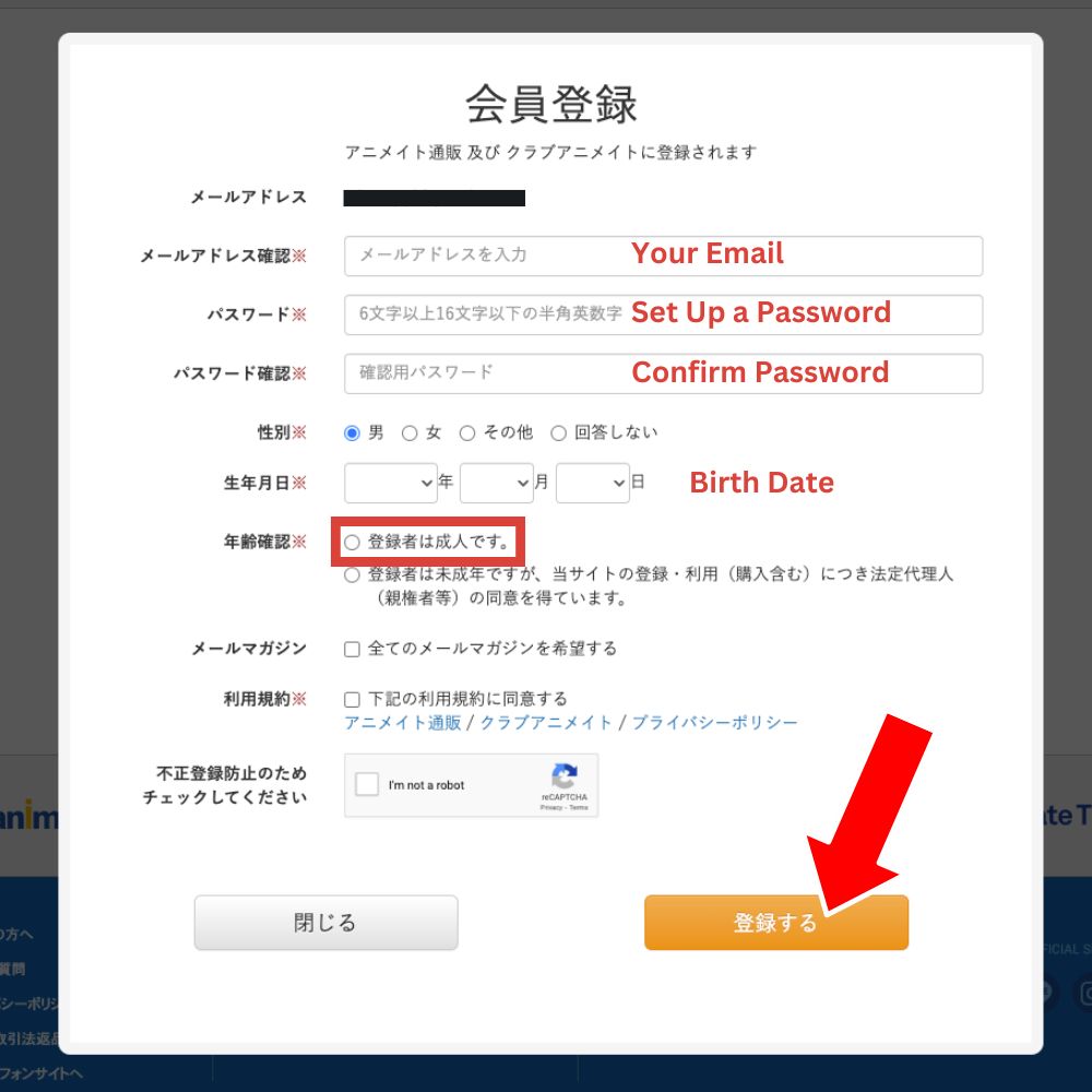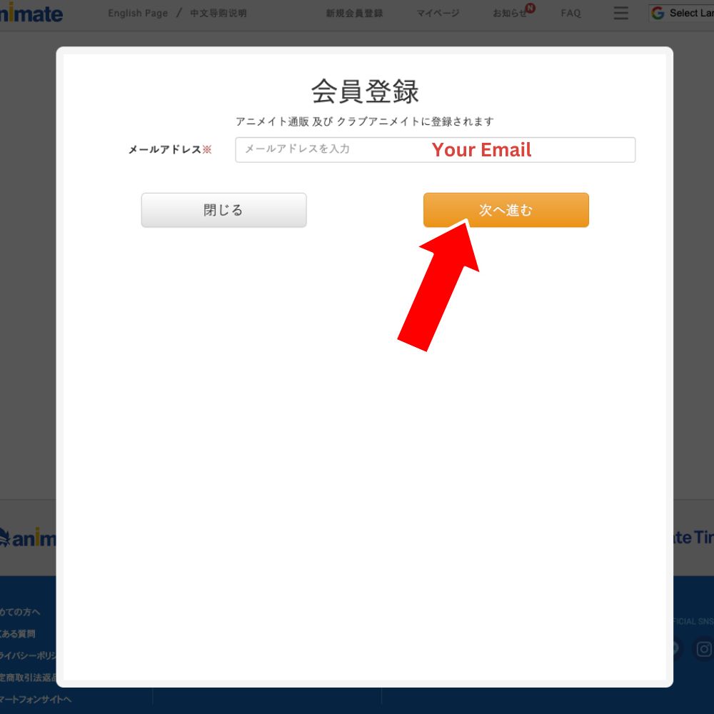 前往 animate 日本官網,點擊上方「新規会員登録」。