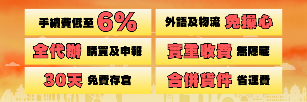 • 代購手續費低至 6%
