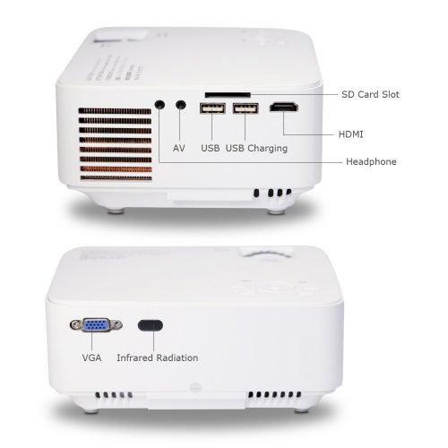 DBPOWER T20 1500 源生 800X480 分辨率,支持 1080p 全高清播放,可以支持 32 吋至 176 吋投影。超小型嘅迷你投影機,放喺邊度都唔會佔地方,支持 1080p 全高清播放,用法隨意自由!