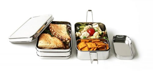 全不鏽鋼飯盒,最底層容量約 1.5 杯,上層容量約 1.75 杯。內附一個小盒俾你分隔食物,間隔分明,容易清潔,帶飯首選。