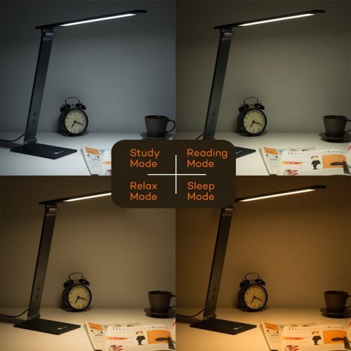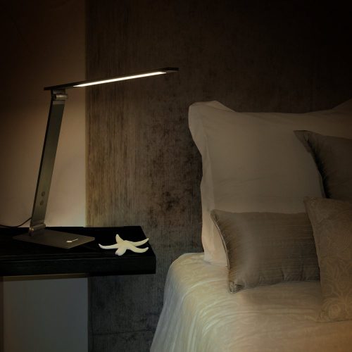 使用全金屬打造嘅一體式設計燈身,時尚同時又堅固耐用,可調較四種顏色同四種光暗度,可以用黎做床頭燈、睡房燈、閱讀燈等各種功能。無眩光、無閃爍,使用自然光源,可以保護眼睛不受傷害。