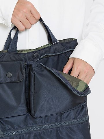 The North Face 嘅 PURPLE LABEL 基本上就係日版!呢個手提袋使用 LIMONTA 尼龍斜紋布,內裡仲有迷彩暗紋。出面三個細袋可以放置小物品,大格就可放文件,A4 SIZE、13″ 電腦都絕無問題,手提袋款式岩晒拎返工襯 Smart Casual 咁用!仲有三個顏色選擇。