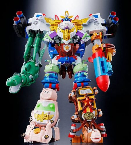 各個 Toys Story 合體成為超合金機械人,以巴斯光年 Buzz Lightyear 做重心,由其他各個成員作為四肢,合體成為機械人。機械人全高 205mm,霸氣十足。而每個人物亦可以獨立折出再自由合體,耐玩度極高。
