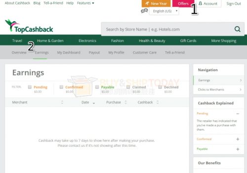 Upon order confirmation, TopCashBack will send you an email notification of your cashback earnings, or you can check it directly on your TopCashBack account. All you need to do is click「Account」on top right corner, then choose「Earnings」, and it will show a summary of your cashback earnings. You can then transfer those earnings back to your Paypal account for your next purchase.