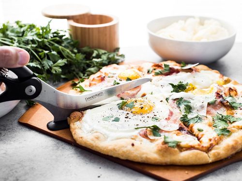 Throw your blunt pizza wheel in the bin, Scizza won’t scratch your non-stick pans or dull on pizza stones, and it makes easy work for thick crusts and even deep dish pizza too!
