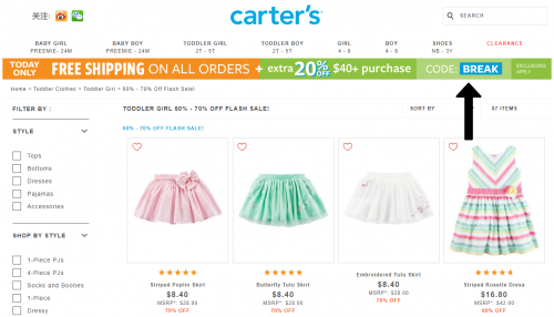 Whenever you think of shopping for baby and kid’s clothing, one of the most trusted name within the industry has got to be Carters.com. They carry a range of cute baby & kids clothing, necessities, and essentials that moms love, and most important of all, they’re always on sale! And if you’re still unsure where to look for the discount codes, here’s a short tutorial for you to follow:
