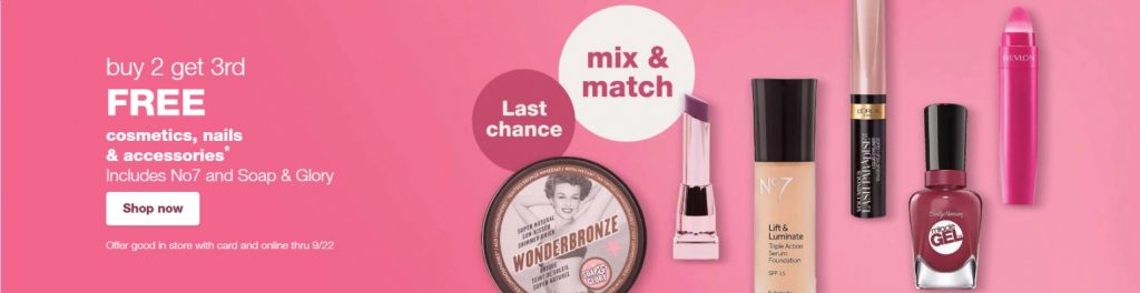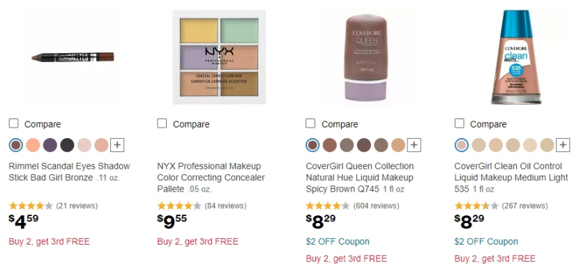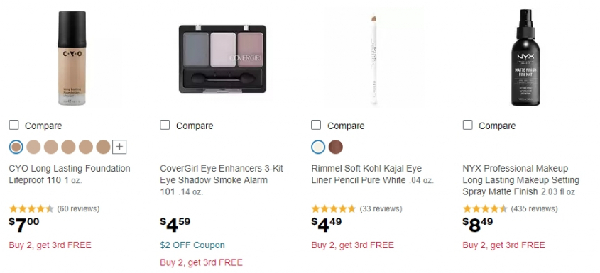 At present, Walgreens offers a buy 2 get 1 free deal of a big selection of makeup and skin care products. The third item is free of charge.