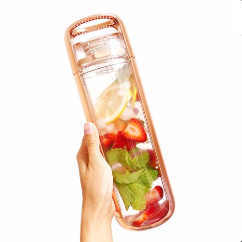 This stylish water bottle doesn’t only look good, it also helps you to stay hydrated and help the environment by using less disposable plastic bottles! Add fresh lemon, cucumber or other fruits to give your water an extra flavor kick and bring this bottle with you wherever you go! And it comes in various colors!