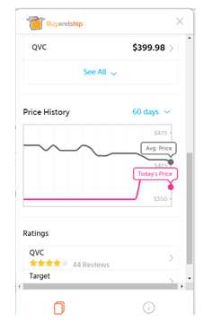 Once you press on the orange button, it will scour the internet for the item that you are trying to purchase, it’s pricing on other sites, as well as the historical prices and the ratings that has been given.