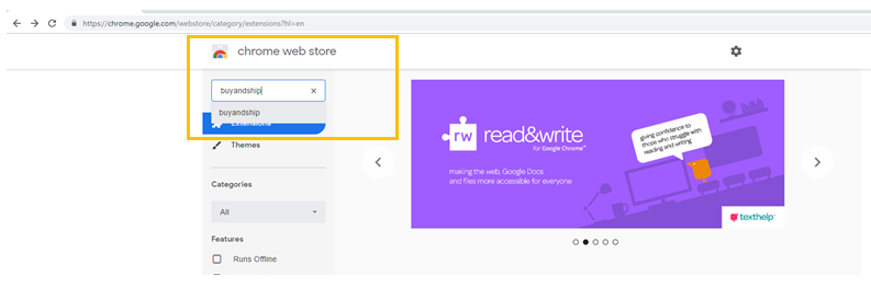 * if that doesn’t work, go to the main page of Chrome Extension here and type in “Buyandship” in the search box (like in the picture below)