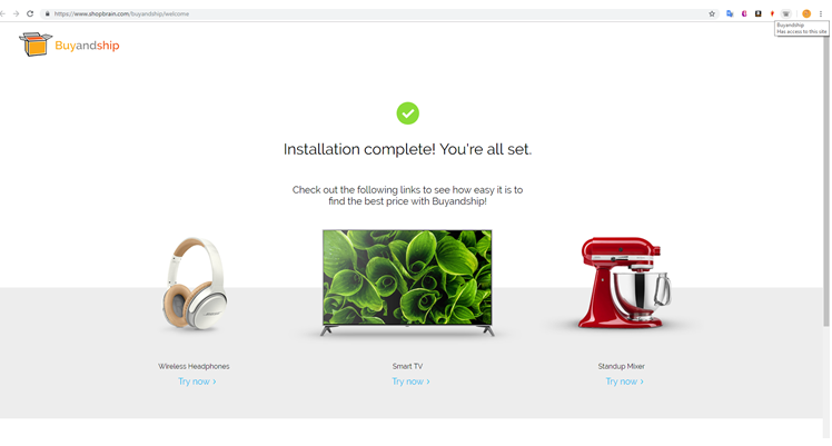 3. Once the installation is complete, you will see a little grey box on the top right corner of your browser. This means that the BuyandShip app is downloaded but is currently inactive.