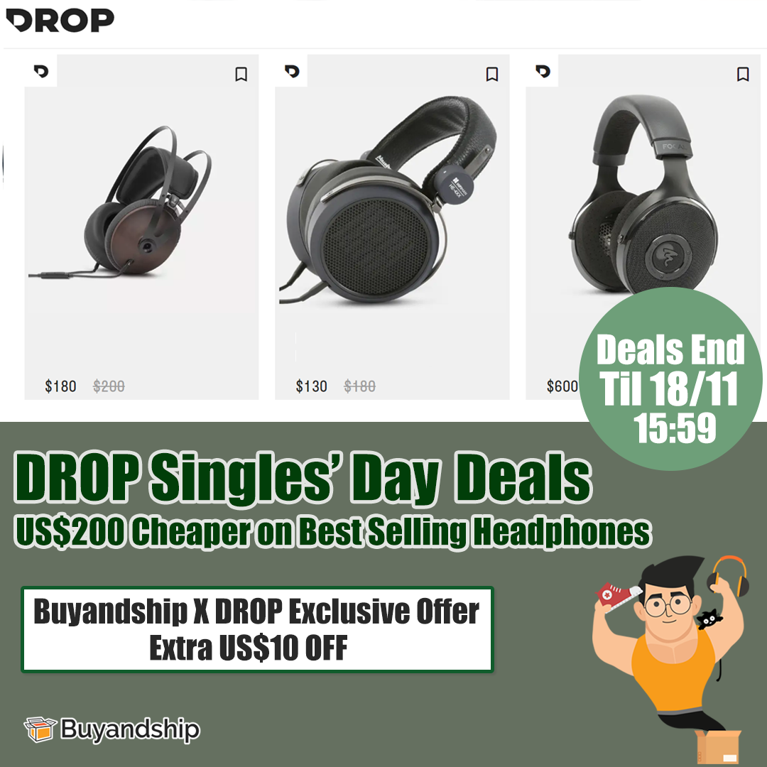 Singles’ Day Deals are definitely not limited to Taobao! Even Drop, the US platform with many innovative electronic products, is also having Singles’ Day offers! There are many best selling headphones are on sale. Moreover, Buyandship members can enjoy an EXTRA, EXCLUSIVE OFFER US$10 OFF on any Drop Studio product purchased through the dedicated URL. Deals end till 18 Nov 03:59 PM (HK Time)! Take action now!