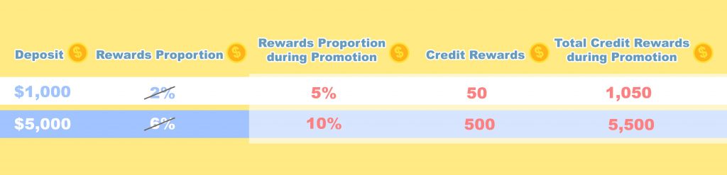 .Members have to recharge within the Promotion Period to be eligible for the rewards. Any recharge after the promotion period will not be entitled to any extra credits.