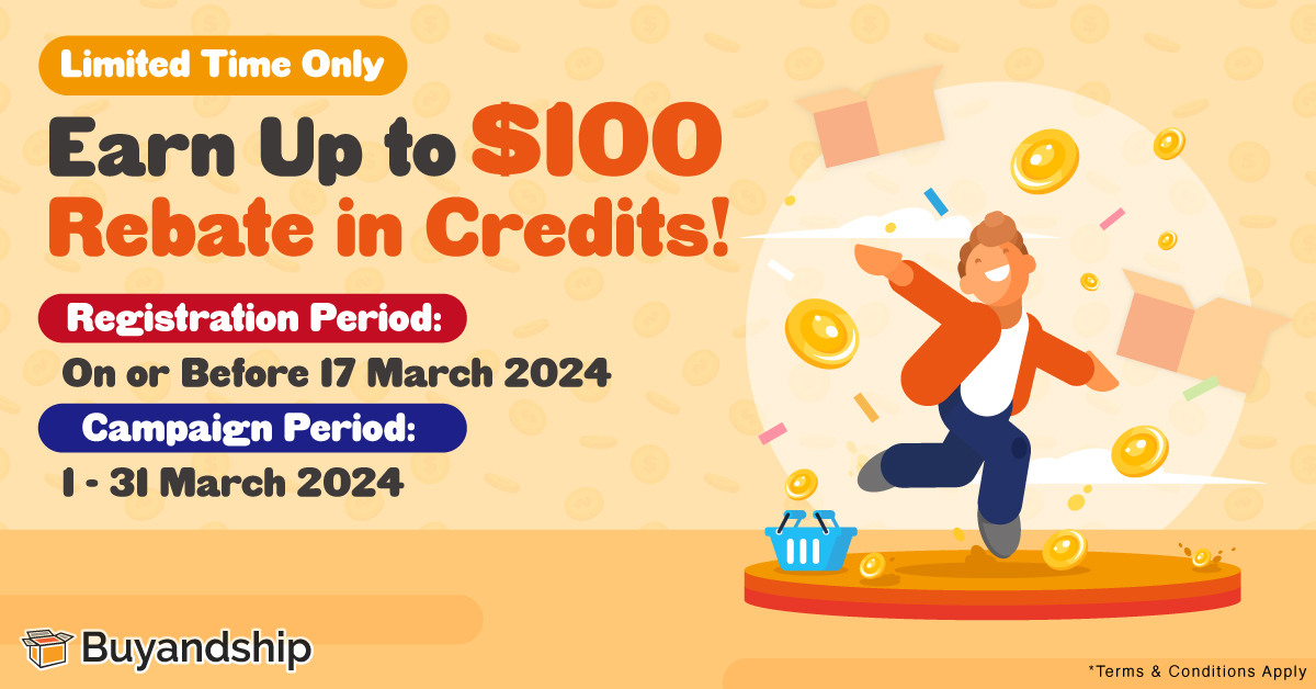 We are excited to announce our limited-time shipping fee rebate program! Register now by providing your Buyandship member ID through the below form on or before March 17th. Then, if the total chargeable weight of your orders completed during March 1st to March 31st reaches the specified target, you will receive up to $100 rebate in credits in April!