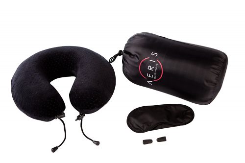 This Aeris neck pillow has over 1400 reviews on amazon, and the memory foam provides an excellent support, which makes you LOOK FORWARD to using it on your next plane flight! Special about this memory foam is, it yields slowly under compression and provides little resistance until the weight is distributed over the entire area. When the weight is lifted off, memory foam very slowly returns to its original shape.