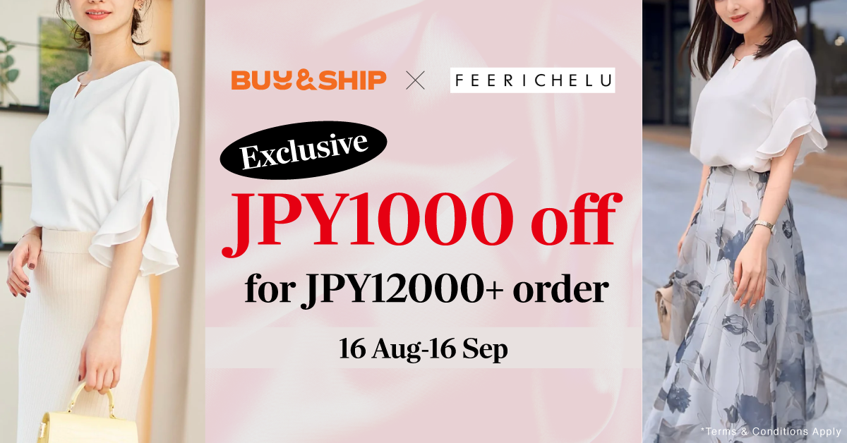 From August 16th to September 16th, Buy&Ship members can enjoy a ¥1,000 discount on single orders of ¥12,000 or more at FEERICHELU (feerichelu.jp) with Promo Code [ABFC22], each member can use the Promo Code ONCE. Don’t miss this chance to elevate your wardrobe with high-quality, timeless pieces at incredible prices!